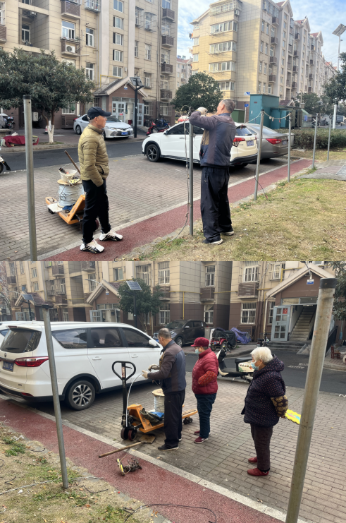 百水芊城出新改造前為方便居民晾曬制作的設(shè)施,由于長(zhǎng)時(shí)間風(fēng)吹日曬,部分鋼繩生銹斷裂,有些居民只能用尼龍繩代替,或者私拉晾曬將繩子栓在樹上,不僅導(dǎo)致小區(qū)環(huán)境極不美觀而且影響樹木后期正常生長(zhǎng)。為此社區(qū)及時(shí)安排人員巡查小區(qū)內(nèi)破損晾曬繩,做好統(tǒng)計(jì),并將舊的破損鋼繩全部拆除更換新的鋼繩,并拉直固定,使其煥然一新,方便轄區(qū)居民日常晾曬,同時(shí)美化了社區(qū)環(huán)境。