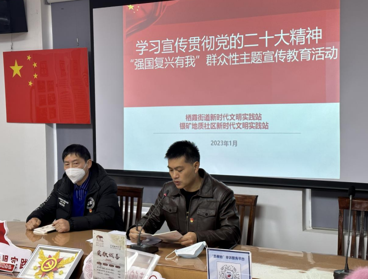 為更好地學(xué)習(xí)宣傳貫徹黨的二十大精神,1月17日,南京市棲霞區(qū)棲霞街道全民閱讀辦聯(lián)合銀礦地質(zhì)社區(qū)黨總支開展學(xué)習(xí)貫徹黨的二十大精神“強(qiáng)國(guó)復(fù)興有我”群眾性主題宣傳教育活動(dòng)。