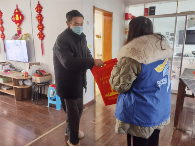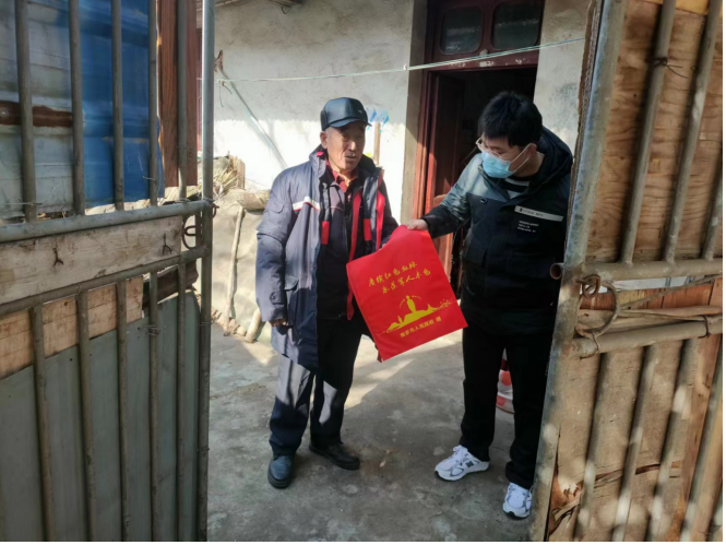 社區(qū)一行人與退役軍人進行親切地交談,詢問他們的身體狀況和生活狀況,囑咐家人要好好照顧他的身體。同時,一行人還為他帶去了春聯(lián)、福字,讓他們能夠在這中國傳統(tǒng)節(jié)日里感受到社區(qū)的關(guān)懷以及營造和諧、溫暖的節(jié)日氣氛。“感謝黨和政府記得我們,作為一名退伍老兵,我深感自豪。”