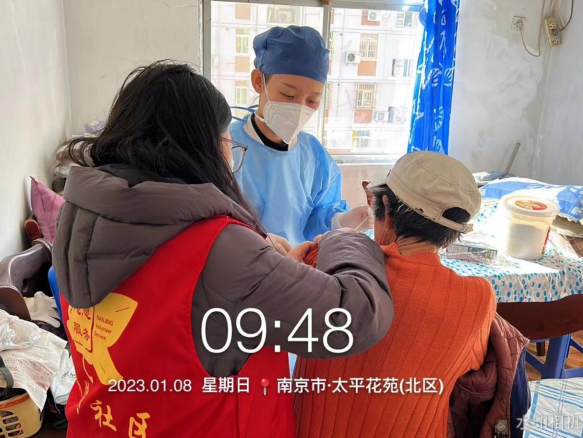 為加快構(gòu)筑老年人免疫屏障,近日,南京市江寧區(qū)秣陵街道湖濱社區(qū)積極開展80周歲老人上門接種新冠疫苗志愿服務(wù)工作,社區(qū)新時(shí)代文明實(shí)踐志愿者踴躍參與。