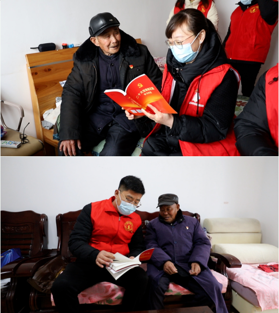 考慮到轄區(qū)部分老黨員行動不便,村黨委組織青年黨員集結(jié)“冬訓送學”小分隊,對行動不便黨員以電子書、閱讀等形式助推冬訓課堂走深走實;同時,將黨員冬訓與新時代文明實踐相結(jié)合,組織開展“黨的聲音進萬家”文明實踐主題系列活動,將“理論年貨”送到轄區(qū)黨員群眾手里,為黨員“補鈣壯骨”。成立“愛心伴讀”黨員志愿服務(wù)隊,通過“讀給你聽”“和你一起讀”等形式,開展重點群體閱讀關(guān)愛幫扶和閱讀推廣活動,用“小角度”講清“大道理”,用“身邊事”講實“硬道理”,用“土教材”講活“新道理”。
