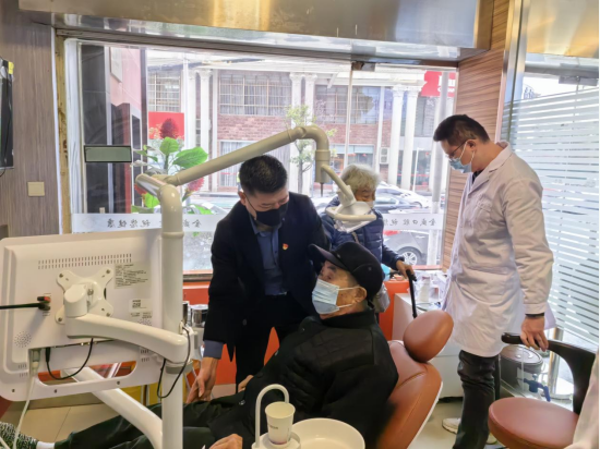 隨后,在退役軍人服務(wù)站站長的陪同下,退役軍人許在東來到江寧金盛口腔診所進行檢查治療。拔牙過程中,退役軍人服務(wù)站站長還貼心安慰許在東的情緒,認真記下醫(yī)囑并一一告知其家屬。退役軍人服務(wù)站站長還主動陪同許在東到東山衛(wèi)生院排隊拿藥,真正做到了以點滴行動溫暖退役軍人。