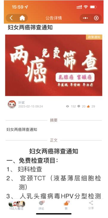 掌上云宣傳婦女“兩癌篩查”健康守護(hù)暖