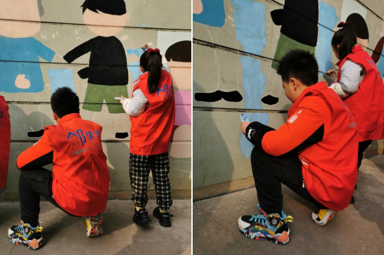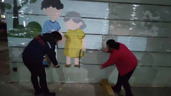 活動(dòng)開(kāi)始之前,志愿者通過(guò)在網(wǎng)格群內(nèi)發(fā)布活動(dòng)通知,招募活動(dòng)的參與人員,動(dòng)員轄區(qū)內(nèi)的家庭積極參與。2月18日下午,老師們將墻壁當(dāng)成畫布,一筆一劃認(rèn)真地將墻壁布局,進(jìn)行圖案的勾畫,提前將輪廓畫好。碰到晚上下雨,公益樓長(zhǎng)還自發(fā)前往活動(dòng)場(chǎng)地將畫保護(hù)起來(lái)。