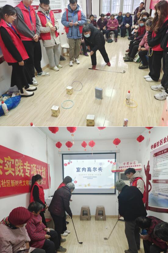 隨后,志愿者帶領(lǐng)現(xiàn)場老人們開展套圈、室內(nèi)高爾夫、講座小問答等游戲,鍛煉了老人的大腦和手眼協(xié)調(diào)能力,使他們完全投身于游戲的歡樂之中。在收到游戲獎(jiǎng)品后,老人們紛紛露出了欣慰的笑容。
