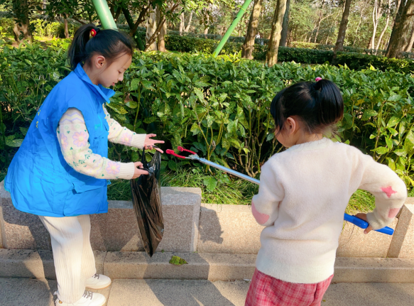 一路上,大學(xué)生志愿者負(fù)責(zé)道路前進(jìn)安全和輔助撐開垃圾袋,居民家庭兒童志愿者則負(fù)責(zé)用垃圾夾夾起垃圾放入袋中,他們的配合非常默契。志愿者們將目光緊鎖于地面,從路邊草叢,到垃圾桶堆放死角,不僅能夠發(fā)現(xiàn)枯木等大型垃圾,也不放過任何煙頭、紙巾等細(xì)小的垃圾。一轉(zhuǎn)眼,整個中山陵園就變得煥然一新了。