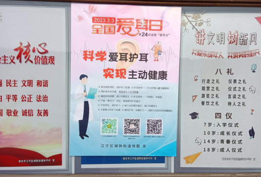 為了提高轄區(qū)居民愛耳護耳意識,減少聽力殘疾的發(fā)生,近日,南京市江寧區(qū)湖熟街道和平村開展“愛耳日”宣傳活動。