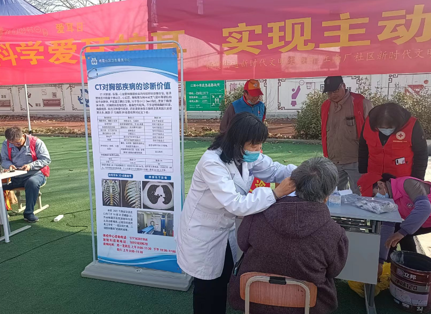 社區(qū)殘協(xié)的志愿者們?yōu)楝F(xiàn)場(chǎng)居民發(fā)放健康知識(shí)宣傳單頁,棲霞街道衛(wèi)生服務(wù)中心專業(yè)醫(yī)師有序地為現(xiàn)場(chǎng)居民群眾提供健康義診、疾病咨詢等志愿活動(dòng)。