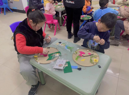 在雨水節(jié)氣手工制作環(huán)節(jié)中,工作人員帶領(lǐng)孩子們運用DIY材料,發(fā)揮天馬行空的想象力,用膠水將樹葉、花瓣等粘在畫板上,組成一幅幅極具春意的雨水節(jié)氣畫,給人一種耳目一新的感受。