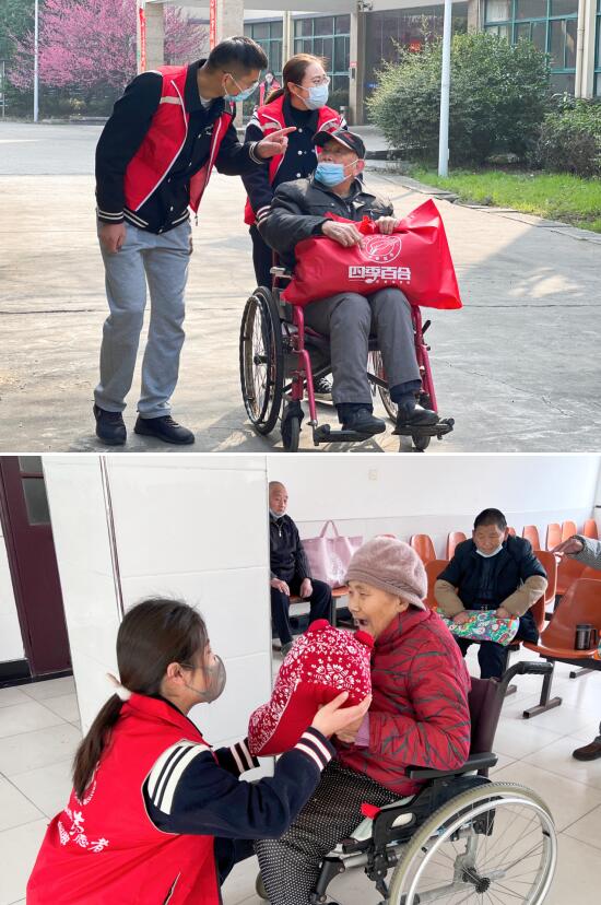 旭日暖陽(yáng)溫暖了三月的大地,伴著和煦的春風(fēng),黨團(tuán)員教師、“同心圓”志愿者們走進(jìn)南京市江寧區(qū)秣陵街道敬老院,給敬老院的老人們送去溫暖。“爺爺奶奶,我們來(lái)看你們來(lái)了……”一進(jìn)敬老院,老師們一邊親切地問(wèn)候著老人,一邊將精心準(zhǔn)備的生活物資送到老人的手里。