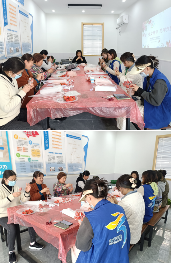活動開始前,網格員祁倩首先向在座的各位婦女同胞們致以節(jié)日的問候,并介紹了活動的流程內容以及草莓花束的具體制作流程。手工活動中,祁倩為婦女同胞們準備了花束材料,隨后一步步示范制作方法。大家的制作熱情被點燃了,紛紛開始認真投入到花束制作中??粗粋€個草莓在自己的手里變成了一個個多彩多樣的花束,大家都開心得笑了。