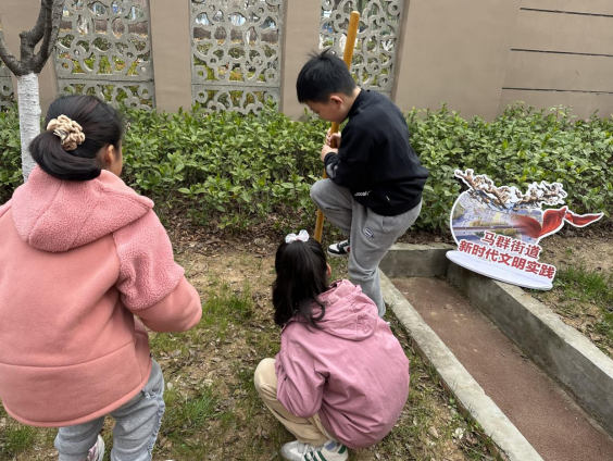 3月11日上午9點,花園驛站圍滿了參加活動的居民,在社區(qū)種花達人王京老師的指導下,小朋友們分好了隊伍,配備了工具。有挖坑的,有扶著花苗的,有填土的,還有提著水桶來回澆水的,干得熱火朝天。他們中有不少人都是第一次參加栽花,動作稍顯笨拙,但這絲毫都不影響他們對種花勞動的積極與熱情。