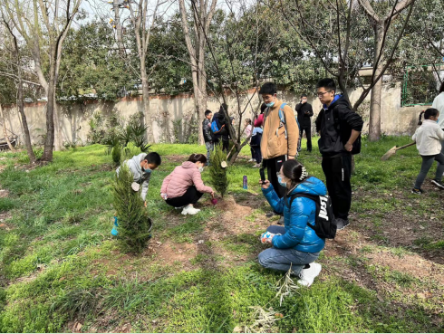 活動中,在志愿者們的組織分工下,社區(qū)未成年人及家長們以家庭為單位進行協(xié)作。有的挖坑,有的扶苗,有的澆水,有的培土,忙得不亦樂乎。隨著一株株承載著美好希望的樹苗種下,大家用實際行動呼吁愛綠護綠植綠。