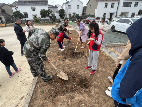 社區(qū)退役軍人先鋒隊(duì)志愿者首先向孩子們介紹“植樹節(jié)”的來歷、植樹造林的意義以及如何愛護(hù)小樹苗的知識,將“愛綠護(hù)綠”的種子灑在每個(gè)孩子的心中。隨后,所有人三五一組,以“一埋二踩三提苗”的流程,揮鍬鏟土、培土育新,分工協(xié)作、默契配合。青少年們與家長一起共同“種小苗,成大樹”,用行動(dòng)爭做小小護(hù)綠使者。