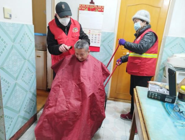 志愿幫扶小組入戶為行動(dòng)不便的兩補(bǔ)人員理發(fā)、打掃衛(wèi)生,救助小管家入戶宣傳兩項(xiàng)補(bǔ)貼救助政策。
