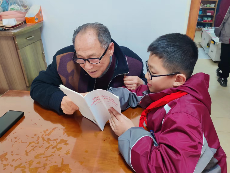 為營(yíng)造“共學(xué)二十大”全民閱讀的濃厚氛圍,3月16日,南京市棲霞區(qū)馬群街道潤(rùn)康苑社區(qū)新時(shí)代文明實(shí)踐站組織社區(qū)工作人員和南灣營(yíng)小學(xué)的學(xué)生來到老黨員家中開展“學(xué)習(xí)貫徹黨的二十大精神,踔厲奮發(fā)新征程”送學(xué)上門全民閱讀活動(dòng),為老黨員奉上豐盛的“精神食糧”。