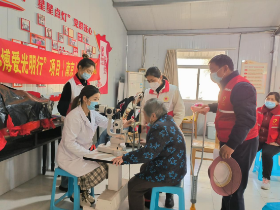 白內(nèi)障是一種常見(jiàn)高發(fā)眼科疾病,發(fā)病率高,致盲率也高,嚴(yán)重影響著人們身體健康和生活質(zhì)量,而且呈現(xiàn)年輕化趨勢(shì)。為了使轄區(qū)老人、殘疾人、其他視力障礙等各類(lèi)人群能夠及時(shí)發(fā)現(xiàn)問(wèn)題、盡早治療,3月16日上午,由江蘇省紅十字會(huì)、江蘇省衛(wèi)計(jì)委、南京醫(yī)科大學(xué)附屬眼科醫(yī)院聯(lián)合發(fā)起的“博愛(ài)光明行”公益行動(dòng)走進(jìn)南京市棲霞區(qū)棲霞街道新合村,在新合小區(qū)居家養(yǎng)老室內(nèi)為村民開(kāi)展免費(fèi)白內(nèi)障及眼病篩查。