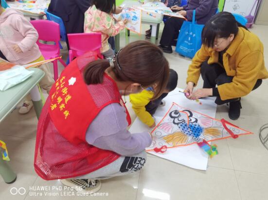 繪本閱讀結(jié)束后,鹿鹿老師為親子家庭分發(fā)風(fēng)箏及顏料,組織大家一同在風(fēng)箏上展開涂鴉,在親子家庭的默契配合下,一幅幅五彩繽紛的圖案一一呈現(xiàn),有蝴蝶、金魚、恐龍、小狗……看著自己親手繪制的風(fēng)箏,兒童們臉上都洋溢著天真快樂的笑容,現(xiàn)場氛圍十分活躍。