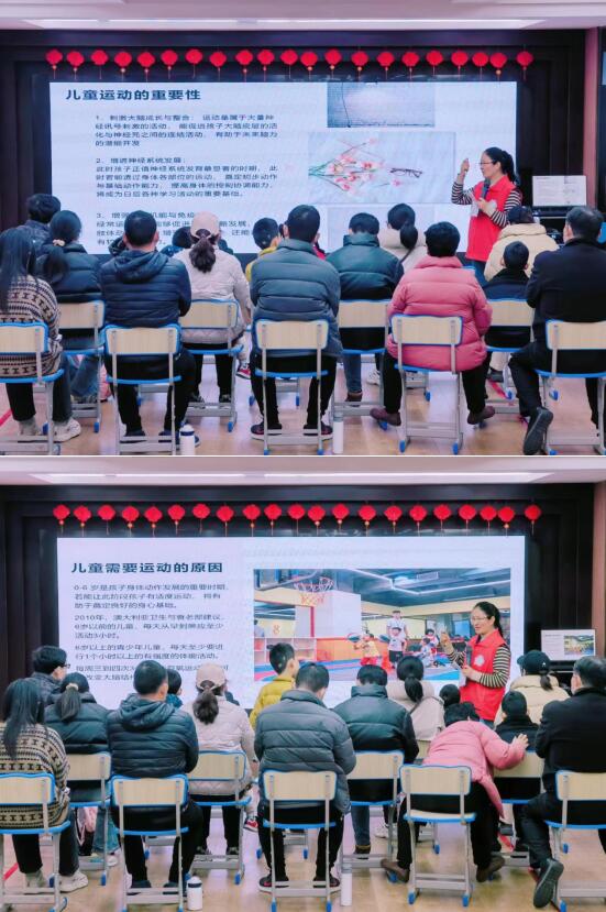 講座從兒童需要運(yùn)動(dòng)的原因、兒童運(yùn)動(dòng)的重要性、兒童的動(dòng)作發(fā)展三方面詳細(xì)介紹了兒童運(yùn)動(dòng)的重要性,強(qiáng)調(diào)了運(yùn)動(dòng)對(duì)于兒童身體各方面的發(fā)展都有著重要的影響,能夠刺激大腦成長(zhǎng)與整合、增進(jìn)神經(jīng)系統(tǒng)發(fā)展、增強(qiáng)身體機(jī)能與免疫力,此外,適當(dāng)?shù)倪\(yùn)動(dòng)還有利于提升兒童情緒與社交能力、增進(jìn)親子關(guān)系、改善特殊兒童發(fā)展問(wèn)題。講座還為家長(zhǎng)們提供了一些實(shí)用的建議,如如何選擇適合兒童的運(yùn)動(dòng)項(xiàng)目、如何讓兒童喜歡運(yùn)動(dòng)、如何避免運(yùn)動(dòng)中的安全問(wèn)題等。家長(zhǎng)們認(rèn)真傾聽(tīng),積極互動(dòng),取得了良好的效果。