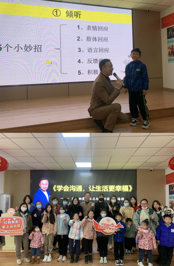 活動(dòng)前期,“紅韻小管家”客服在各掌上云微信群發(fā)布活動(dòng)消息,吸引了大量青少年家庭報(bào)名參與?;顒?dòng)中,吳老師以“你經(jīng)常和孩子進(jìn)行溝通嗎?”引入主題,以如何提升和孩子的溝通質(zhì)量,多傾聽孩子聲音,幫助孩子健康成長(zhǎng)為主線,引出家長(zhǎng)如何做好榜樣,樹立良好家風(fēng)?,F(xiàn)場(chǎng)通過理論教育和現(xiàn)場(chǎng)模擬的方式,向家長(zhǎng)傳授了有效親子溝通的方式和技巧,旨在讓家長(zhǎng)把這些方式方法用在和孩子溝通的日常生活中,不斷提升家長(zhǎng)和孩子溝通質(zhì)量,增強(qiáng)親子之間的感情,為孩子健康成長(zhǎng)營(yíng)造和諧、有愛、美麗的家庭環(huán)境。
