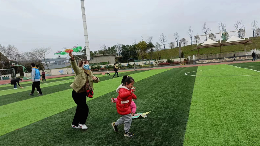 隨后,在太陽城小學(xué)的操場(chǎng),志愿者們帶領(lǐng)孩子們放飛風(fēng)箏。天空中,五彩繽紛的風(fēng)箏翩翩起舞,如同一幅美麗的畫卷。雖然有些小朋友沒能成功放飛,但也在一次次地嘗試著歡呼雀躍,追逐奔跑,享受著春日的陽光和微風(fēng)。志愿者們也與孩子們互動(dòng)交流,教他們?nèi)绾慰刂骑L(fēng)箏的高度和方向,講述風(fēng)箏的歷史和文化,增進(jìn)了他們對(duì)傳統(tǒng)手工藝的了解和喜愛。
