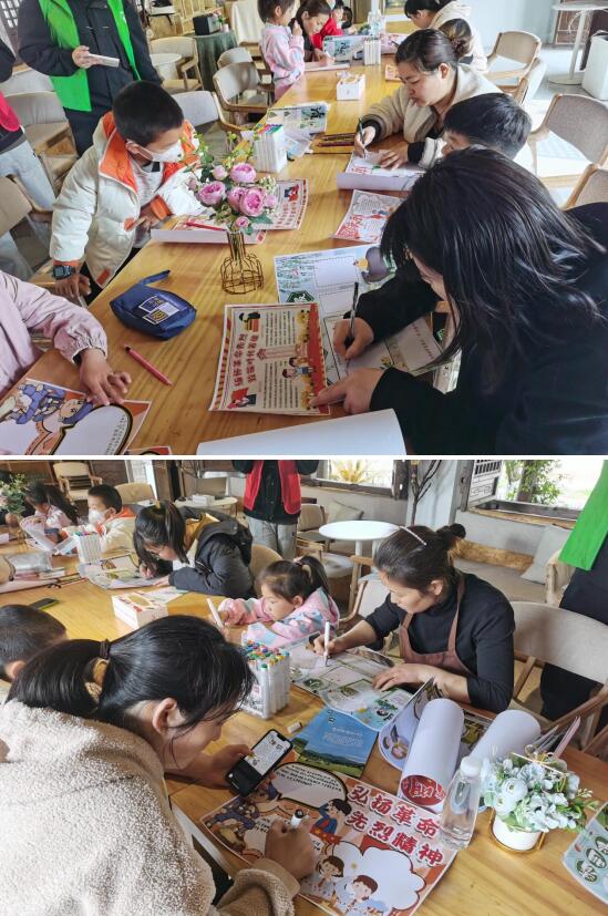 活動(dòng)現(xiàn)場(chǎng),老師通過(guò)介紹清明節(jié)的由來(lái),引出祭奠革命先烈活動(dòng)主題,向青少年們講述了烈士們的英雄事跡,希望大家能夠銘記紅色歷史,珍惜今天來(lái)之不易的幸福生活。隨后,老師組織現(xiàn)場(chǎng)青少年及家長(zhǎng)共同完成“緬懷革命先烈 致敬時(shí)代英雄”手抄報(bào),加深大家對(duì)紅色文化的認(rèn)知。