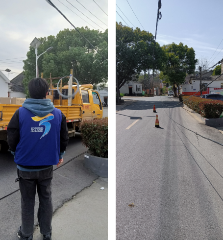 詢問路人,發(fā)現(xiàn)是貨車刮到了電線,并掉到路面中央。網(wǎng)格員陳家鑫和龐立飛立即找來相關(guān)部門協(xié)調(diào),并迅速派出工作人員修復電線;同時社區(qū)網(wǎng)格員清理現(xiàn)場樹立警示牌,并在現(xiàn)場維持秩序,提醒來往的車輛和行人繞道,注意安全,避免發(fā)生觸電危險。