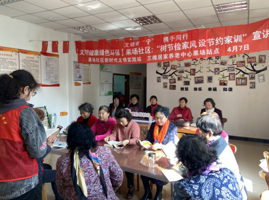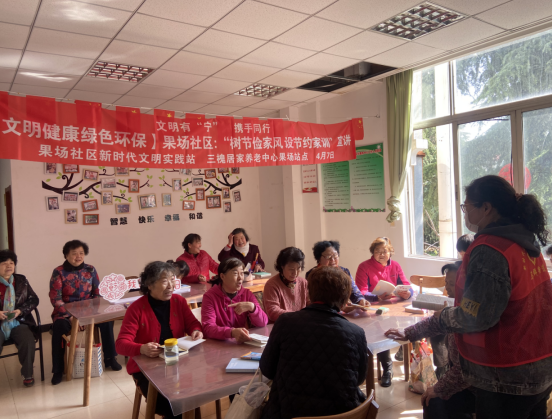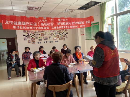 為深入學(xué)習(xí)貫徹習(xí)近平總書記關(guān)于家風(fēng)家訓(xùn)之“堅決制止餐飲浪費(fèi)行為”的重要指示精神,進(jìn)一步樹立“厲行節(jié)約,反對浪費(fèi)”的理念,養(yǎng)成勤儉節(jié)約的良好習(xí)慣。2023年4月7日,南京市棲霞區(qū)馬群街道果場社區(qū)依托新時代文明實(shí)踐站,組織社區(qū)老黨員、老年居民、“齊益果”積分制志愿者,在社區(qū)三槐居家養(yǎng)老服務(wù)中心開展了“文明有‘寧’ 攜手同行”主題的“樹節(jié)儉家風(fēng) 設(shè)節(jié)約家訓(xùn)”宣講。