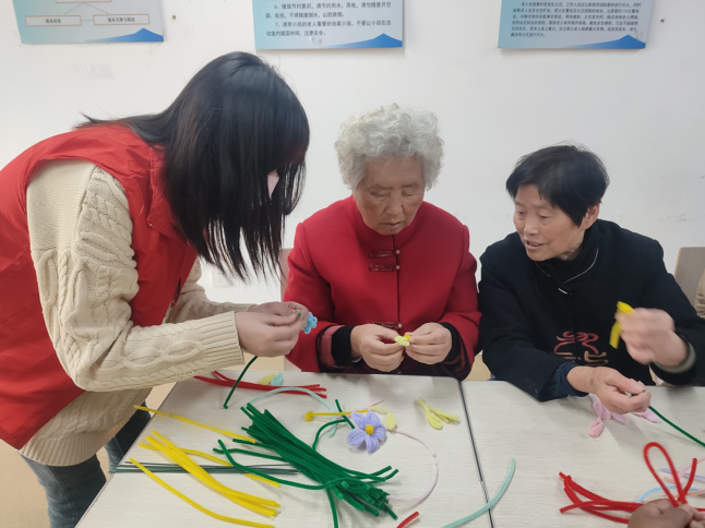 活動(dòng)現(xiàn)場(chǎng),志愿者首先給大家分發(fā)制作手工花的材料,隨后向老人們講解和示范,并詳細(xì)介紹注意事項(xiàng)。對(duì)于這個(gè)新奇的手工制作,老人們迫不及待地動(dòng)起手來(lái),認(rèn)真按照步驟開(kāi)始制作,在制作過(guò)程中,有些手工材料有點(diǎn)小,部分殘疾老人不太容易操作,但是在志愿者的耐心協(xié)助下,大家互相幫助,經(jīng)過(guò)大家的努力,老人們都完成了自己的作品,一朵朵精致漂亮的手工花呈現(xiàn)在眼前,大家開(kāi)心地向志愿者和伙伴展示,看著自己親手制作的作品,大家臉上滿是喜悅?;顒?dòng)結(jié)束,志愿者讓殘疾老人們舉著自己親手制作的花拍照留念,記錄這愉快的時(shí)光,大家小心翼翼地把作品裝好,說(shuō)要帶回家做紀(jì)念,并相約下次活動(dòng)再見(jiàn)。