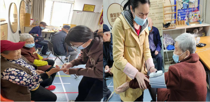 活動(dòng)開(kāi)始前,參與活動(dòng)的殘疾人和老年人來(lái)到康復(fù)站進(jìn)行血壓血糖測(cè)量。根據(jù)服務(wù)對(duì)象的測(cè)量結(jié)果,康復(fù)站工作人員提出積極鍛煉、規(guī)范用藥、合理飲食、健康作息等方面的建議,并對(duì)大家提出的康復(fù)問(wèn)題進(jìn)行仔細(xì)解答指導(dǎo)。