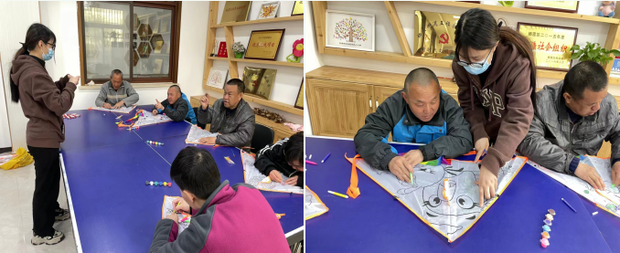 活動(dòng)開(kāi)始后,老師向大家介紹了本次活動(dòng)所用到的材料以及風(fēng)箏的制作工藝和繪畫方法,殘疾人們根據(jù)風(fēng)箏上的圖案進(jìn)行自由描繪。在整個(gè)活動(dòng)的過(guò)程中,到處充滿著歡聲笑語(yǔ),氛圍和諧歡樂(lè),大家一邊了解著有關(guān)風(fēng)箏的知識(shí)和來(lái)歷,一邊做出了風(fēng)格迥異、顏色鮮明的風(fēng)箏。