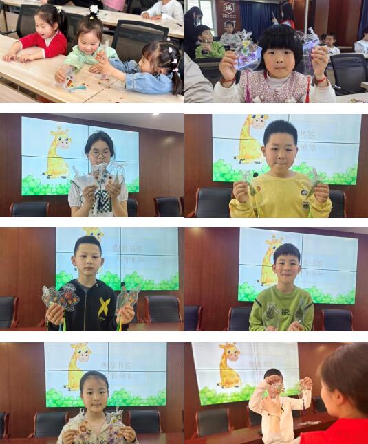 大家拿著自己親手制作的書簽,相互欣賞著,成就感滿滿的。
