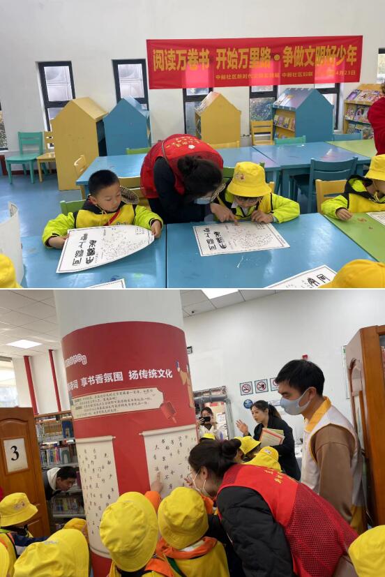 4月23日是世界讀書(shū)日,為豐富社區(qū)青少年文化生活,進(jìn)一步引導(dǎo)青少年養(yǎng)成健康的閱讀習(xí)慣,營(yíng)造良好的閱讀氛圍。南京市江寧區(qū)東山街道中前社區(qū)新時(shí)代文明實(shí)踐站聯(lián)合江寧圖書(shū)館,帶領(lǐng)轄區(qū)內(nèi)幼兒園青少年開(kāi)展“閱讀萬(wàn)卷書(shū) 開(kāi)始萬(wàn)里路 爭(zhēng)做文明好少年”全民閱讀主題活動(dòng)。