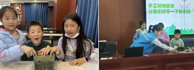志愿者將小朋友們分為三組,每組5人,并每個(gè)小組分配兩名志愿者對(duì)小朋友們進(jìn)行“海綿城市”盆栽制作的指導(dǎo),最終由小朋友們組內(nèi)合作完成。