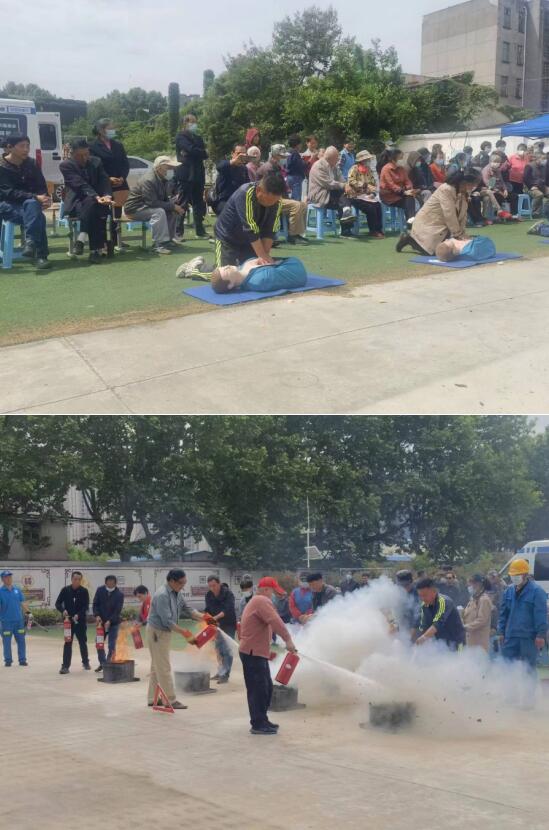 活動現(xiàn)場,社區(qū)工作人員向居民們講解了消防滅火器的正確使用方法以及在發(fā)生火災(zāi)事故后的自救逃生等知識,演示了如何正確滅火、如何用濕毛巾捂住口鼻、如何在火場中撥打報警電話,并詳細(xì)介紹了如何進(jìn)行人工呼吸和心肺復(fù)蘇等急救知識,帶領(lǐng)全體人員進(jìn)行逃生、滅火、急救演練。