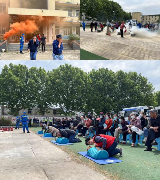 隨后,活動(dòng)從疏散、滅火、急救等方面開展應(yīng)急演練,模擬樓棟著火,居民們?cè)诠ぷ魅藛T的指導(dǎo)下,迅速撤離到安全區(qū)域,并親自體驗(yàn)操作滅火器,學(xué)習(xí)心肺復(fù)蘇、止血、包扎等急救措施。整個(gè)演練活動(dòng)緊張有序,居民們積極參與,學(xué)習(xí)了各項(xiàng)急救技能,掌握了各類消防器材的使用要領(lǐng),增強(qiáng)了大家應(yīng)對(duì)突發(fā)事件的能力。