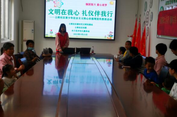 為弘揚(yáng)中華優(yōu)秀傳統(tǒng)文化,進(jìn)一步引導(dǎo)轄區(qū)青少年培養(yǎng)文明禮儀習(xí)慣,展現(xiàn)時(shí)代正能量,爭(zhēng)做新時(shí)代的文明青少年,2023年5月21日,南京市江寧區(qū)淳化街道土橋社區(qū)新時(shí)代文明實(shí)踐站組織志愿者面向社區(qū)青少年開展“文明在我心 禮儀伴我行”青少年社會(huì)主義核心價(jià)值觀文明實(shí)踐活動(dòng)。