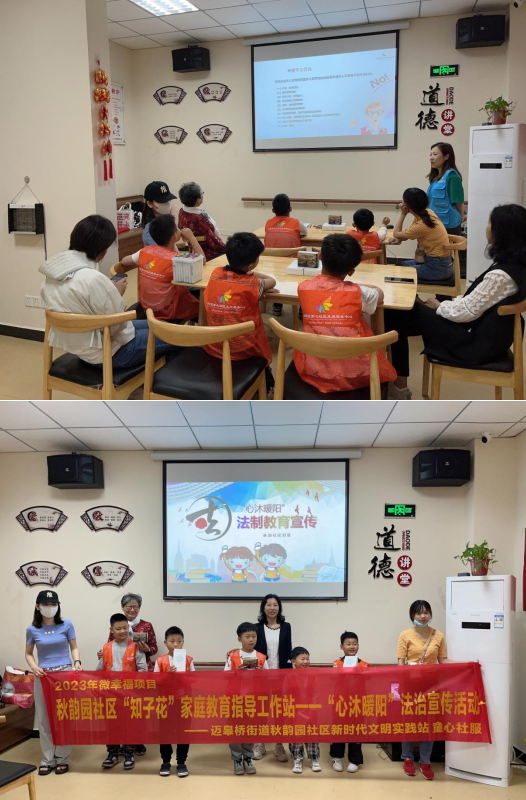 今年5月是第三個“民法典宣傳月”,為進一步加強民法典學(xué)習(xí)宣傳,引導(dǎo)青少年從小掌握法律知識、樹立法律意識,5月21日,南京市棲霞區(qū)邁皋橋街道秋韻園社區(qū)掌上云微幸福項目“知子花”家庭教育指導(dǎo)工作站為轄區(qū)內(nèi)青少年家庭開展了“心沐暖陽”法治宣傳活動。