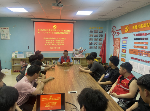 2023年6月2日,馬群街道新時代文明實踐所與果場社區(qū)新時代文明實踐站進行站所聯(lián)動,果場社區(qū)第一網(wǎng)格黨支部、第二網(wǎng)格黨支部聯(lián)合開展學(xué)習(xí)貫徹黨的二十大精神理論宣講,在社區(qū)一樓會議室組織社區(qū)青年黨員、團員、青年居民,由社區(qū)黨總支副書記作為本次宣講志愿者,帶領(lǐng)大家“學(xué)思想、強黨性、重實踐、建新功”,將主題教育做深做實。