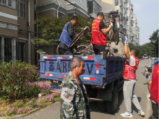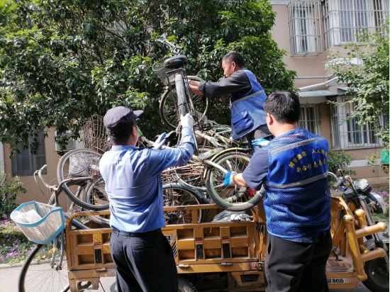 新合小區(qū)共有4棟住戶,盡管每年都會定期清理小區(qū)非機(jī)動車車棚,依然存在隨意擺放廢舊車輛現(xiàn)象,這些“僵尸車”既影響了小區(qū)的整體環(huán)境,又占用了空間影響他人停車,對于原本就緊張的停車位來說,更是一種資源的浪費(fèi)。整治前期,在黨員的帶領(lǐng)下,城市治理志愿者通過實(shí)地查看分析,對長期占用車棚停車位的“僵尸車”進(jìn)行了全面排查。在車棚清理現(xiàn)場,志愿者們擼起袖子加油干,規(guī)整的、搬車的、抬車的,大家充分發(fā)揚(yáng)志愿者“不怕苦、敢打敢拼”的精神,將一輛輛車輛按箭頭方向規(guī)整到位,有序停放,志愿者們也將長期無人使用的“僵尸車”搬出來清拖走,為小區(qū)居民恢復(fù)一片整潔干凈的通行環(huán)境。