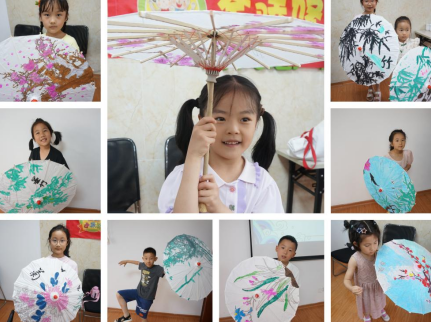 細(xì)雨如絲的江南,悠長寂寞的小巷,一把孤寂的油紙傘和著雨的嘆息,撐出了一個(gè)青年詩人在特定時(shí)代的哀婉的心曲。結(jié)合時(shí)代背景,小老師帶領(lǐng)孩子一起體味詩人對(duì)理想、人生和美好事物的信念和追求。接著,小老師給孩子們講述油紙傘的起源和歷史,大家一起學(xué)習(xí)了油紙傘的制作工藝和內(nèi)涵寓意。最后,孩子們充分發(fā)揮自己的想象力,認(rèn)真投入到繪畫創(chuàng)作中。他們一筆一畫勾勒出自己心中的圖案,靈活的小手游走在傘面和顏料之間,一個(gè)個(gè)美麗的圖案呈現(xiàn)在紙傘上。