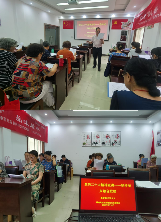 2023年6月16日,南京市棲霞區(qū)馬群街道馨康苑社區(qū)黨總支依托社區(qū)新時代文明實(shí)踐站理論宣講平臺開展了“二十大精神宣講之堅(jiān)持城鄉(xiāng)融合發(fā)展”宣講會。本次宣講會主要由社區(qū)百姓名嘴面向社區(qū)黨員代表和居民骨干開展的宣講,重點(diǎn)為大家介紹了堅(jiān)持城鄉(xiāng)融合發(fā)展對實(shí)現(xiàn)中華民族偉大復(fù)興的重要意義。