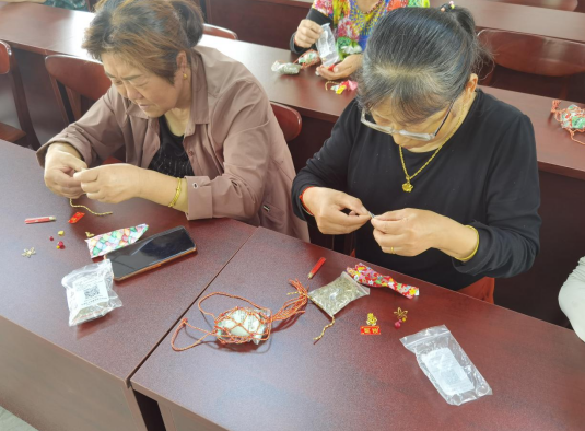 接著,志愿者們帶領(lǐng)居民們共同制作端午節(jié)香包和兜蛋,先給大家觀看了端午節(jié)佩戴香包、兜蛋的傳統(tǒng)習(xí)俗的視頻,志愿者們?cè)敿?xì)講解了香包制作的方法。參加活動(dòng)的居民們熱情高漲、躍躍欲試,隨著一針一線精心縫制;一雙雙巧手上下翻飛,不一會(huì)功夫,一個(gè)個(gè)精致、美觀的香包和兜蛋呈現(xiàn)在了大家的手中。大家捧著自己縫制的香包、兜蛋,臉上洋溢著幸福的笑容。