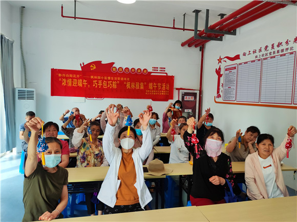 活動(dòng)現(xiàn)場,居民及志愿者歡聚一堂,清洗棕葉、糯米,掛艾草、制香囊,端午氛圍拉滿?;顒?dòng)中,志愿者圍繞“端午節(jié)”主題,通過圖文、影像等方式,對(duì)一批經(jīng)典詩詞散文進(jìn)行賞析,居民們?cè)诔嵔?jīng)典《離騷》節(jié)選中,再次領(lǐng)略了楚辭的風(fēng)騷,在《邊城》的粽香中,尋覓了端午的淵源,在精彩紛呈的分享中,共同感受了中國傳統(tǒng)文化的魅力。