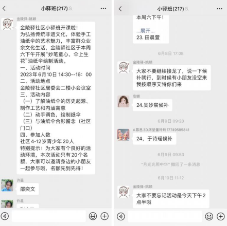 活動前期,金陵驛社區(qū)網(wǎng)格員們通過微信群發(fā)布活動信息,組織居民群眾在掌上云平臺線上報(bào)名,簡化了報(bào)名流程,共招募了20組家庭參加。社區(qū)工作人員根據(jù)掌云后臺統(tǒng)計(jì)的報(bào)名人數(shù)準(zhǔn)備相應(yīng)的活動材料。