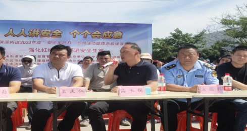 按照橫溪街道“安全生產月”計劃部署要求,圍繞““人人講安全、個個會應急”為主題的宣傳教育“五進”活動。于6月28日上午9時許,橫溪街道副主任陳玉保主持并宣布2023年度“安全生產月”系列活動暨應急救援演練的啟動儀式,同時出席此次活動的嘉賓還有橫溪街道人武部部長孟慶仁、安監(jiān)科、消委辦、企服中心、衛(wèi)計辦、總工會、市場監(jiān)督管理局橫溪分局、陶吳社區(qū)、陶吳衛(wèi)生服務中心等其他街道安委會重點成員單位的各位同志。