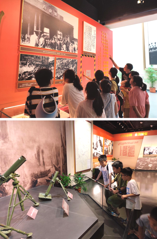 踏入南京渡江勝利紀念館,映入眼簾的是被譽為解放南京“渡江第一船”的 “京電號”,在渡江戰(zhàn)役中,它冒著敵人的炮火,將6000多名解放軍指戰(zhàn)員安全渡過長江,包括鄧小平、陳毅等將領(lǐng),立下了赫赫戰(zhàn)功。走進館內(nèi),解放軍渡江前行的大型浮雕呈現(xiàn)在大家眼前,生動地展示了解放軍渡江的壯麗場景。青少年們聚集在“五老”志愿者毛肥生身邊,聽爺爺講起渡江戰(zhàn)役這段重要歷史,在爺爺?shù)纳鷦又v述中,大家仿佛親眼目睹了百萬雄師過大江那壯觀的場景。隨后,大家參觀了各個展廳,大量的圖片、實物和文字資料重現(xiàn)了那段革命歷史,進一步激發(fā)了青少年們的愛國主義熱情。