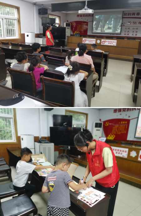 活動(dòng)中,志愿者通過《七七事變》愛國主義教育影像資料重溫歷史、緬懷先烈。通過觀看“七七事變”愛國主義記錄片,進(jìn)一步激發(fā)了孩子們的愛國熱血,切實(shí)增強(qiáng)了孩子們的責(zé)任感和使命感。緊接著,志愿者帶領(lǐng)孩子們一起制作手工長征繪本。志愿者先給孩子們講解制作的流程,并為孩子們分發(fā)了相關(guān)的制作材料。孩子們按照示例圖將卡紙用膠水粘在彩紙上,并按順序用裝訂環(huán)扣上,沒一會(huì)兒的時(shí)間,孩子們就完成了長征故事繪本。孩子們很有成就感的捧著繪本認(rèn)真的閱讀了起來。