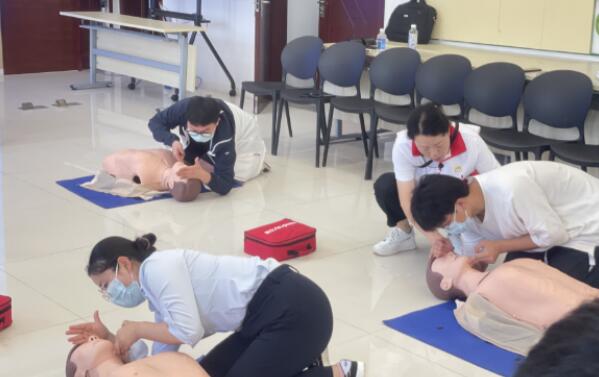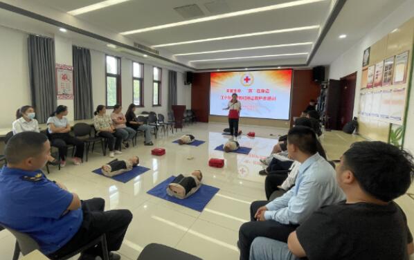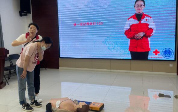 江寧區(qū)紅十字會培訓老師將理論知識和技能實踐相結(jié)合,重點為大家講解心肺復蘇的操作方法,AED 操作方法、氣道異物梗阻等。現(xiàn)場還利用假人道具讓大家上手操作,體驗了胸外按壓、人工呼吸、貼電極貼片等,大家對此表現(xiàn)出了濃厚的興趣,現(xiàn)場學習氛圍濃厚。
