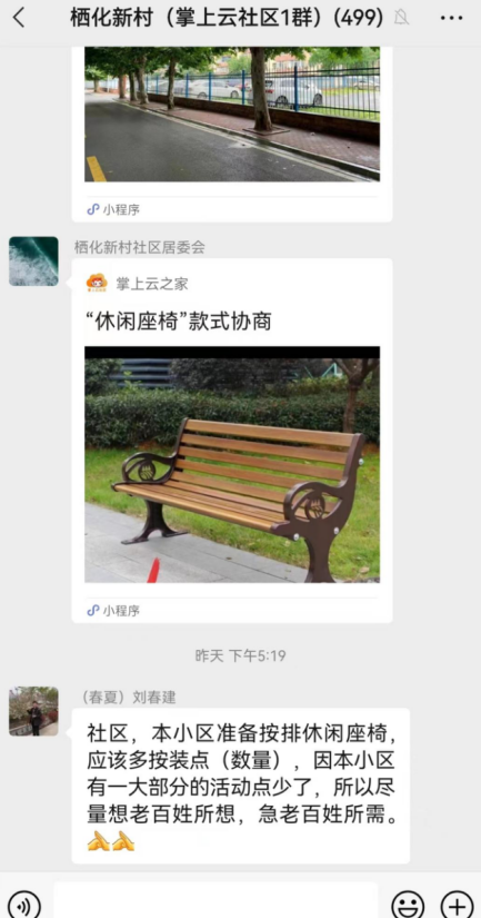 “椅子只要牢固就行,希望把周邊樹木再修剪一下。”居民們在“掌上云社區(qū)”中充分討論,并認(rèn)真選擇自己心儀的座椅款式。